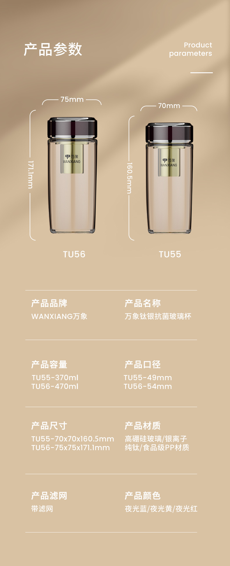 万象钛银抗菌单层玻璃杯 型号TU55-¥415 型号TU56-¥455