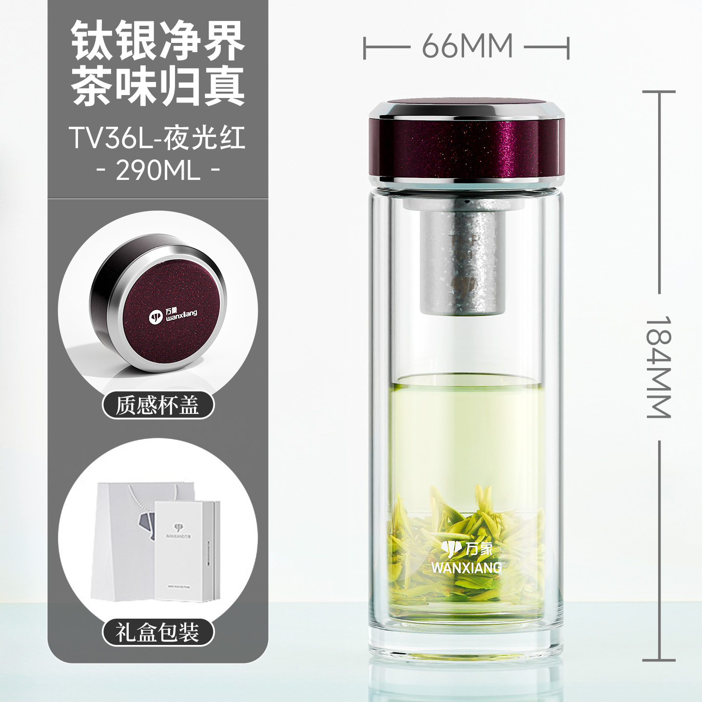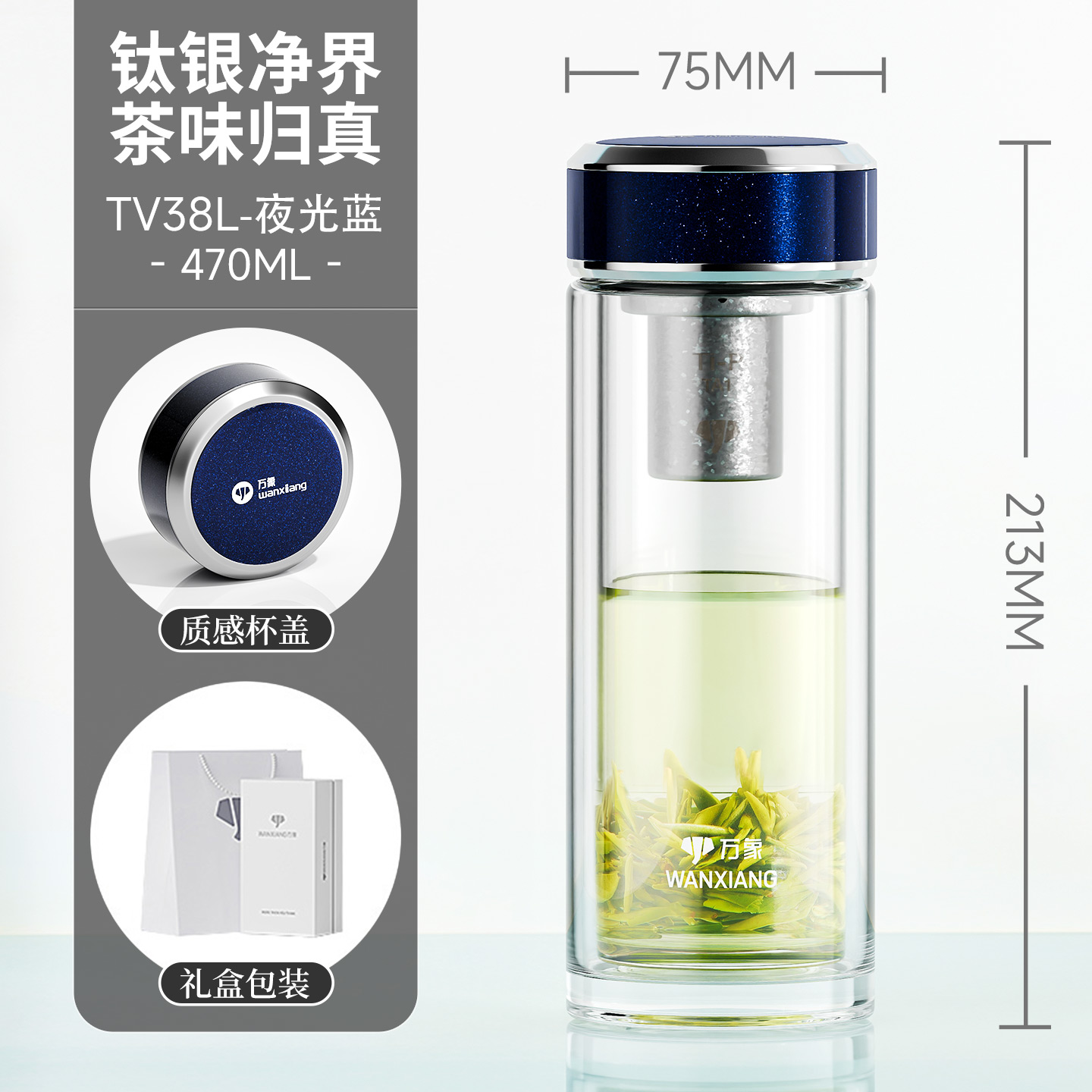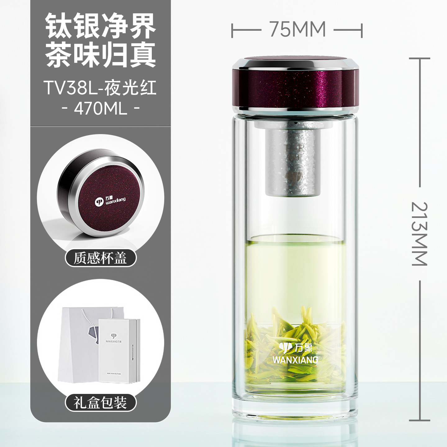 万象钛银抗菌双层玻璃杯 型号TV35L-¥563 型号TV36L-¥600 型号TV37L-¥638 型号TV38L-¥675